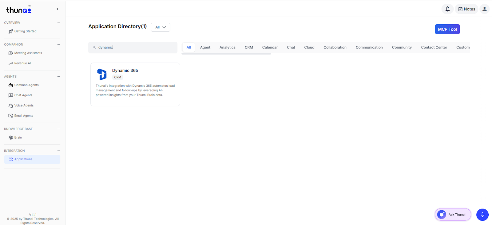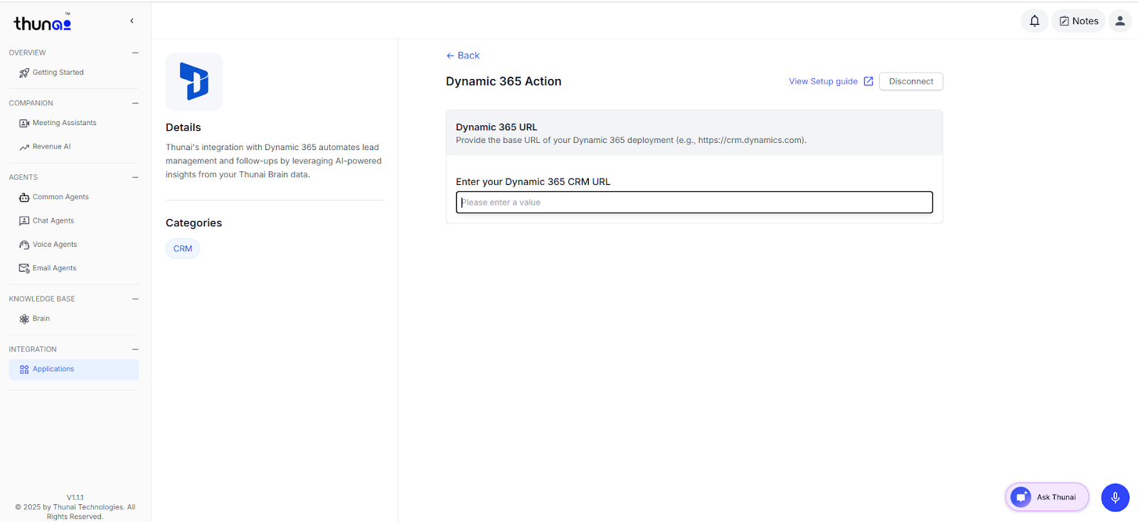 Dynamic 365 CRM integration with Thunai