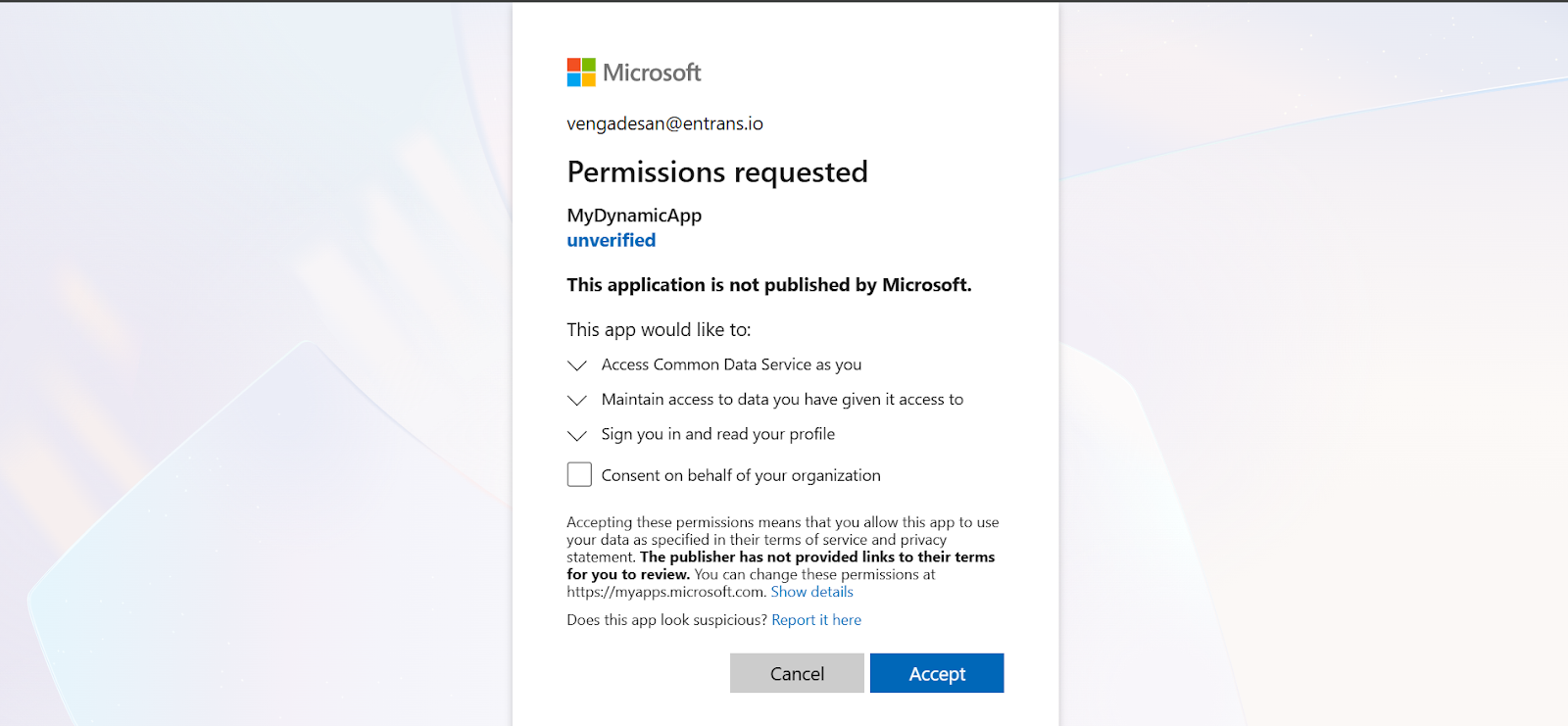 - Verify your workspace and click Accept to authorize the connection.
