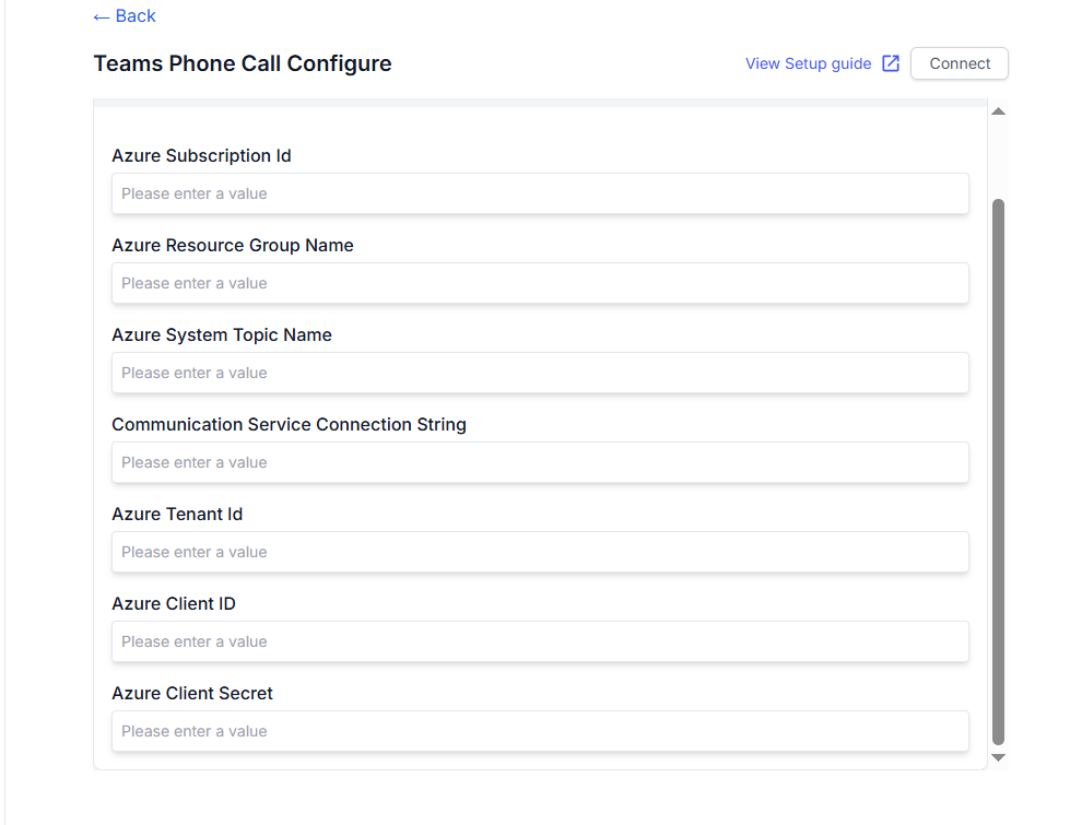 - Communication Service Connection String: Provide your Azure Communication Service Connection String (ACS).